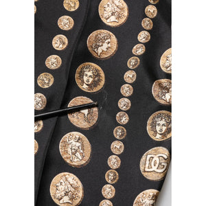 Dolce & Gabbana Black Coin Print Silk Skinny Men Trouser Pants