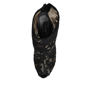 Dolce & Gabbana Black Floral Lace Heels Ankle Boots Shoes