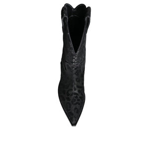 Dolce & Gabbana Black Gray Leopard Cowboy Boots Shoes