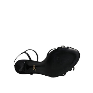 Dolce & Gabbana Black Leather Crystal Bow KEIRA Sandals Shoes