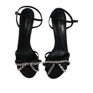Dolce & Gabbana Black Leather Crystal Heels Sandals Shoes