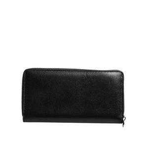 Dolce & Gabbana Black Leather DG Plaque Zip Around Continental Wallet