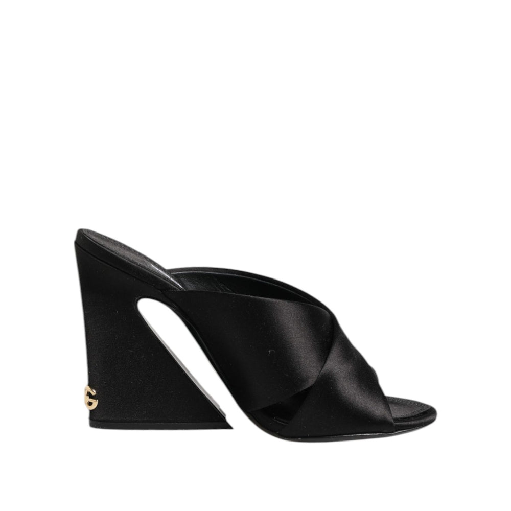 Dolce & Gabbana Black Logo KEIRA Satin Slides Sandals Shoes