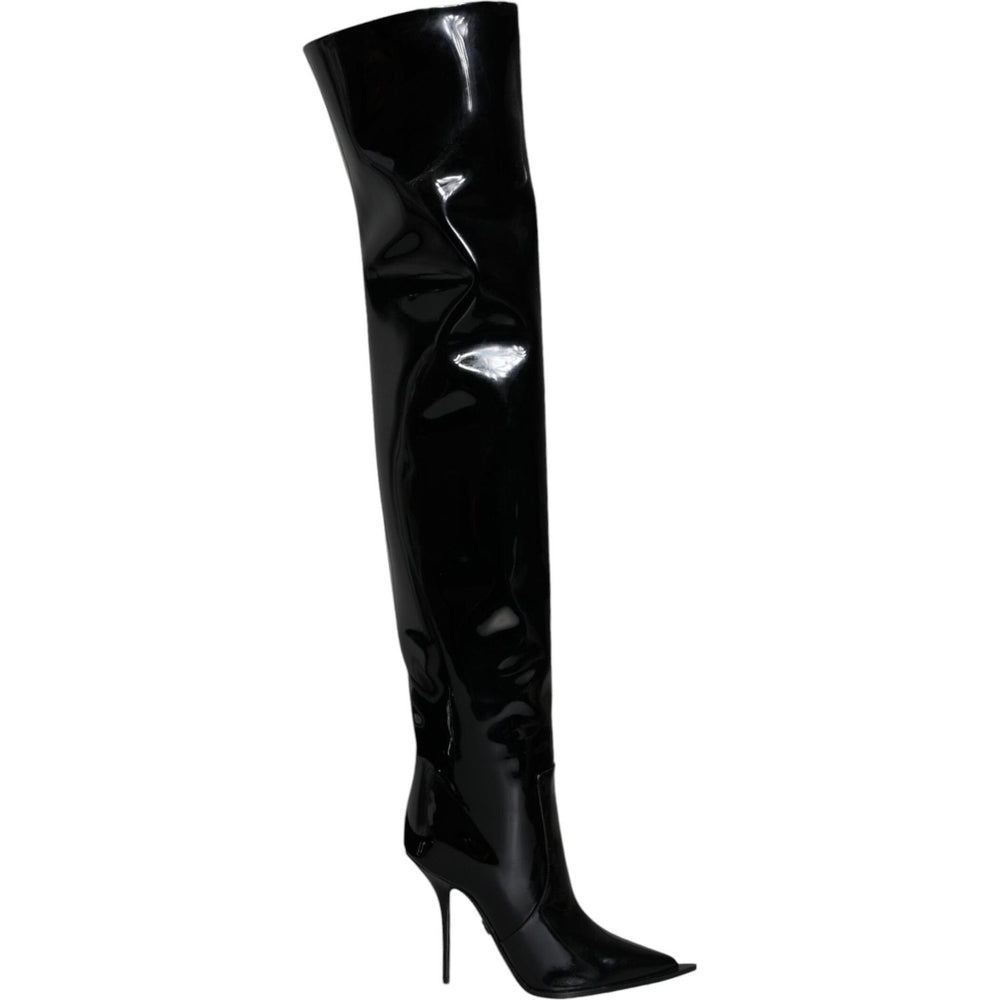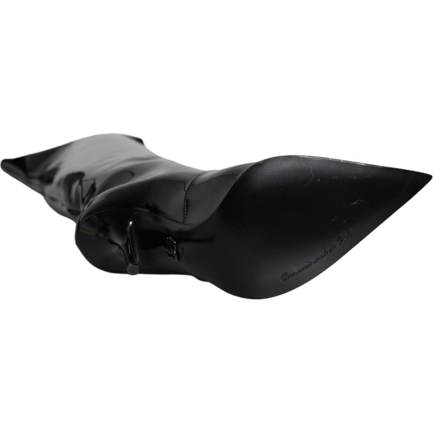 حذاء طويل حتى الركبة من الجلد الأسود اللامع من دولتشي آند غابانا