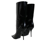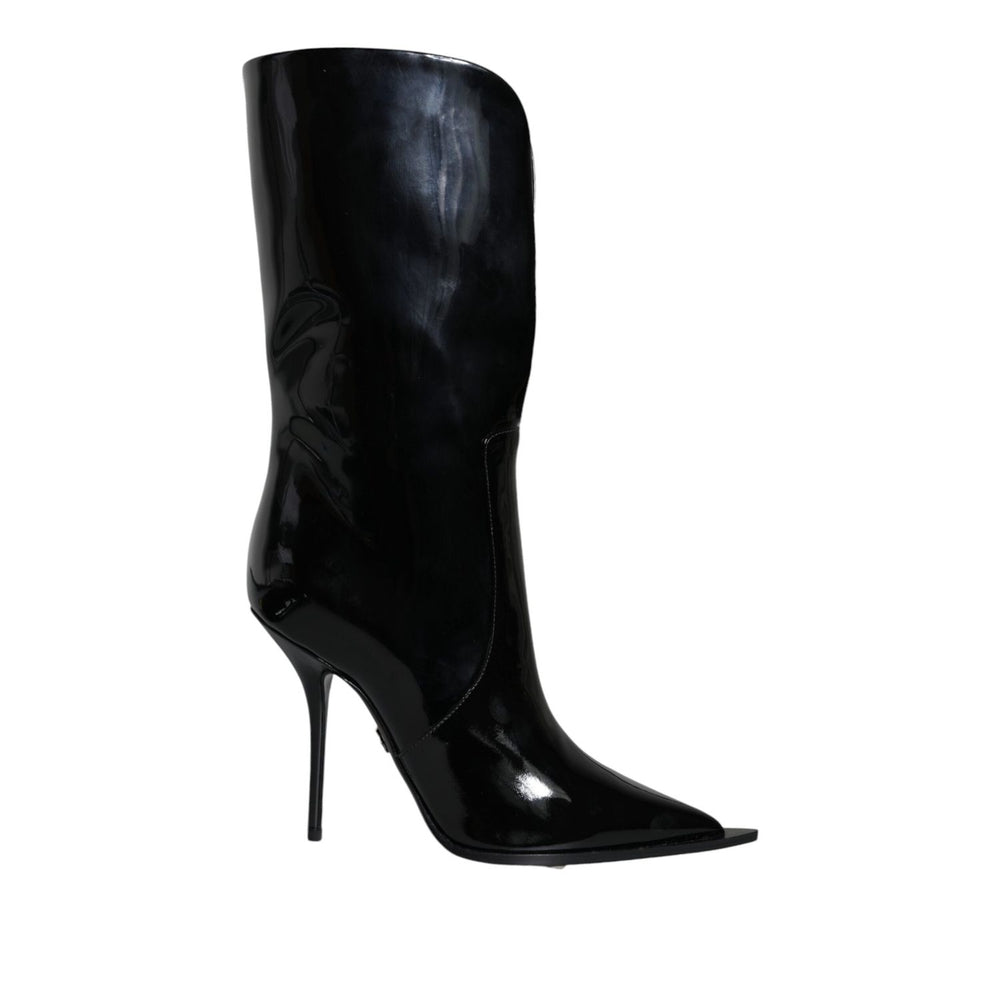 حذاء دولتشي آند غابانا من الجلد اللامع الأسود بطول منتصف الساق