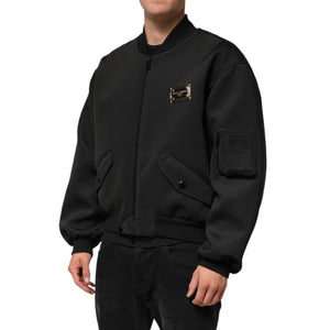 Dolce & Gabbana Black Polyester Logo Plaque Bomber Jacket