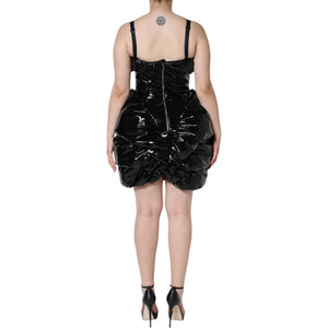Dolce & Gabbana Black Polyester Ruched Coated Mini Dress