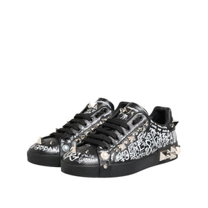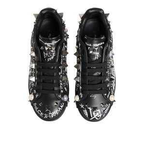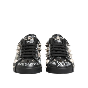 • Dolce & Gabbana Black Portofino Stud Embellished Sneakers Shoes