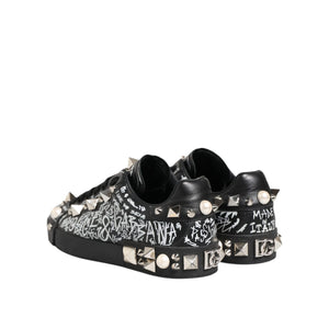 Dolce & Gabbana Black Portofino Stud Embellished Sneakers Shoes