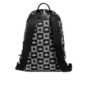 Dolce & Gabbana Black White Crown Printed Nylon School Backpack Bag