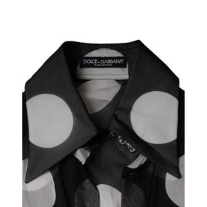 Dolce & Gabbana Black White Polka Dots Silk Long Sleeves Top