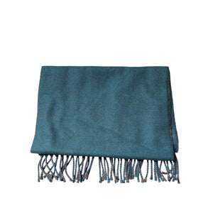 Dolce & Gabbana Blue Green Wool Fringes Wrap Shawl Scarf