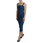Dolce & Gabbana Blue Mesh Trim Ruched Tulle Sheath Dress