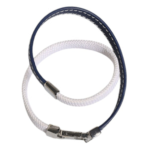 Dolce & Gabbana Blue White Leather Trimmed DG Engraved Silver Tone Clasp Bracelet