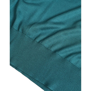 Dolce & Gabbana Dark Green Silk Crew Neck Pullover Sweater