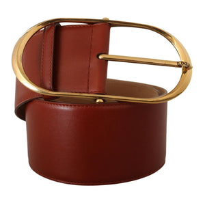 Dolce & Gabbana Maroon Leather Gold Metal Oval Buckle Belt