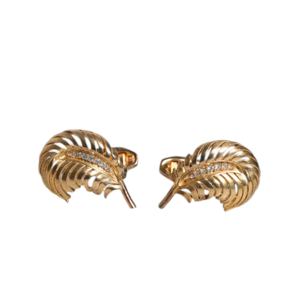 • Dolce & Gabbana Gold 925 Sterling Silver Crystal Leaf Accessory Cufflink
