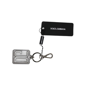 Dolce & Gabbana Gray Black DG Rubber Logo Silver Men's Keychain Keyring