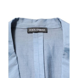 Dolce & Gabbana Light Blue Linen Double Breasted Men Jacket Blazer