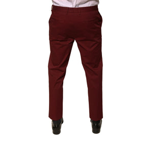 Dolce & Gabbana Maroon Cotton Men Skinny Dress Pants