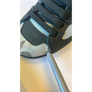 This item has been used as a showroom display piece. There is a small rip on the right shoe and some tiny scratches (see pictures for details). This is the reason for the low selling price and a great opportunity to make a bargain.
