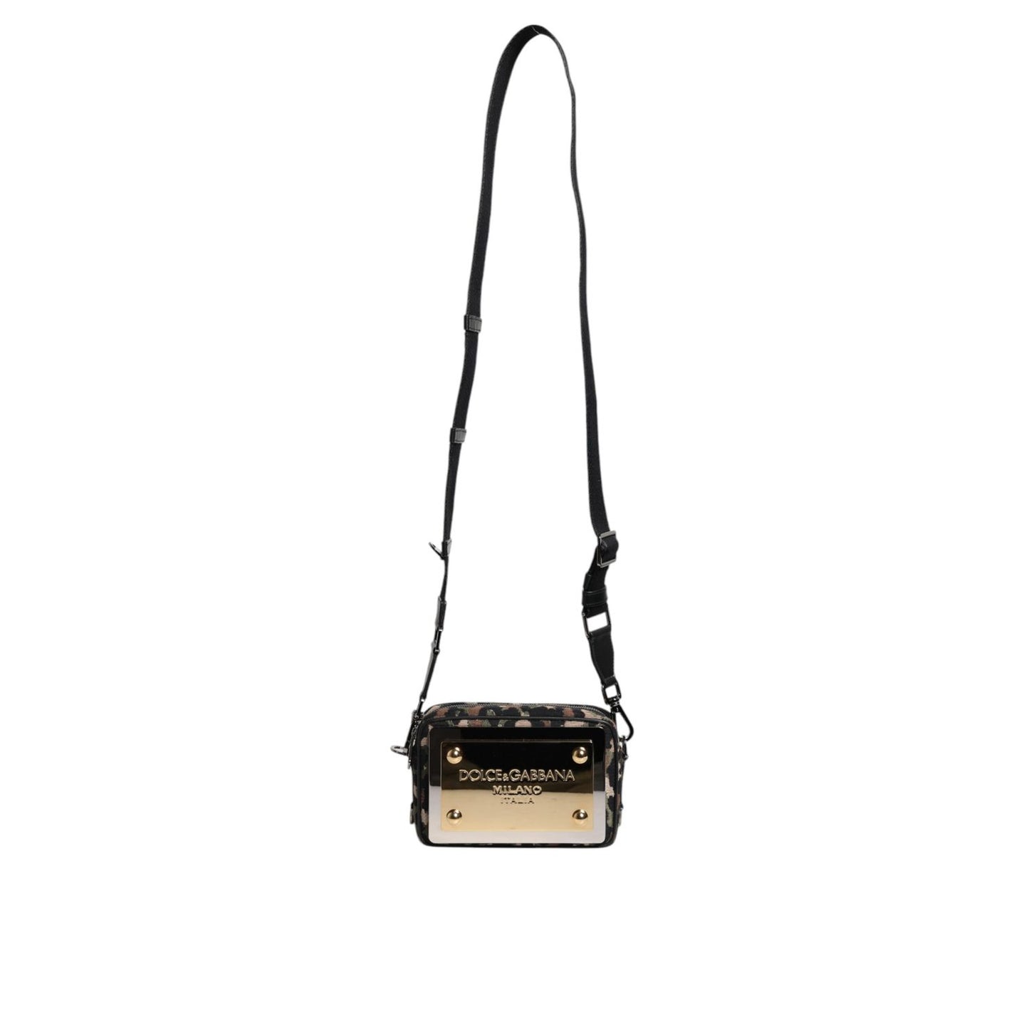 • Dolce & Gabbana Multicolor Leopard Jacquard DG Logo Crossbody Bag with gold-tone logo plate