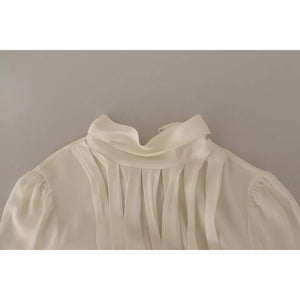 Dolce & Gabbana Off White Silk Long Sleeve Turtle Neck Top
