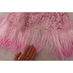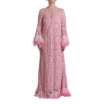 Dolce & Gabbana Shift Lilac Lace Feathers Long Sleeves Dress