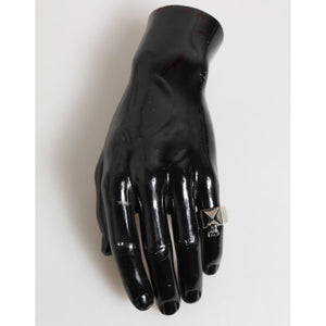 Dolce & Gabbana Silver Tone Pyramid DG Logo Real Brass Ring