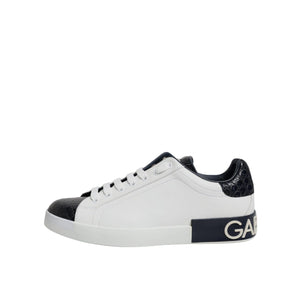 Dolce & Gabbana White Black Leather Portofino Sneaker Shoes