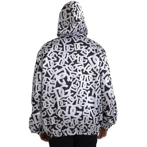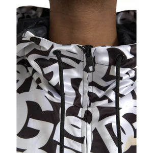 Dolce & Gabbana White Black Logo Hooded Full Zip Bomber Jacket