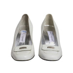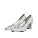 Dolce & Gabbana White Leather Block Heels Pumps Shoes