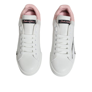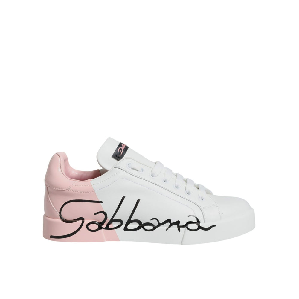 Dolce & Gabbana White Pink Portofino Low Top Sneakers Shoes