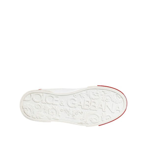 Dolce & Gabbana White Red Leather Lace Up Sneakers Shoes