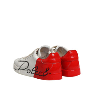 Dolce & Gabbana White Red Leather Logo Low Top Sneakers Shoes