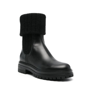 black calf leather smooth grain slip-on style 45mm low block heel folded edge ribbed knit detailing almond toe branded insole rubber sole Leather chelsea boots Size and Fit - Heel 1,6 in / 4 cm Platform 1 in / 2,5 cm