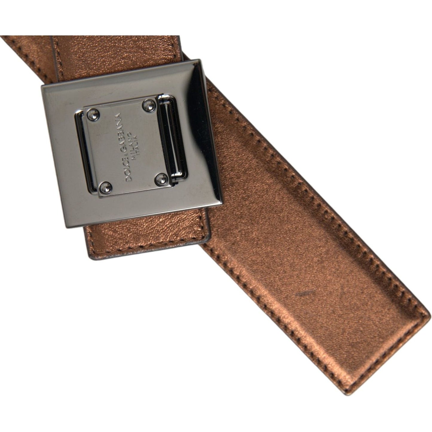 حزام دولتشي آند غابانا المصنوع من الجلد باللون البرونزي المعدني بمشبك معدني مربع