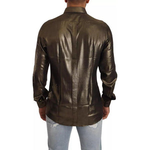 Dolce & Gabbana Metallic Gold DG Embroidered Crown Silk Top Shirt