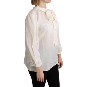 بلوزة دولتشي آند غابانا أوف وايت بأكمام طويلة ورقبة دائرية من الحرير