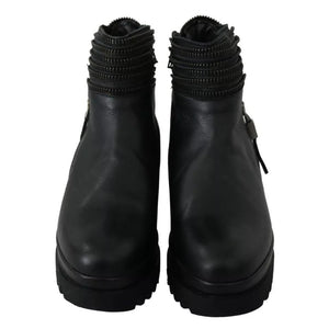 Ovyé Black Leather Zipper Ankle Boots Shoes
