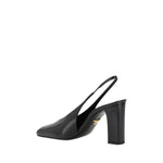 Prada’s leather Décolleté Pumps feature a square toe that gives a modern, refined look. The iconic press-stamped monogram on the front adds a distinctive brand touch. The elasticized slingback design offers a comfortable and secure fit, while the geometric leather heel lends a touch of originality and elegance. The branded insole completes the look with a luxurious accent.