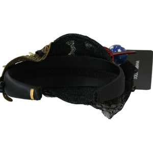 زيّن خصلات شعرك بأناقة الكون مع عصابة الرأس هذه من دولتشي آند غابانا ، وهي مزيج مثالي من الأناقة والغرابة. يتميز هذا التاج المصنوع بمهارة فنية إيطالية لا تشوبها شائبة، بزخارف صاروخية نابضة بالحياة وقمر ونجوم على خلفية سوداء كلاسيكية. هذا الإكسسوار المفصل بشكل رائع ليس مجرد قطعة مميزة ولكنه أيضًا إضافة حصرية لمجموعتك، مما يجعل أي مجموعة تتألق بسحر من عالم آخر.