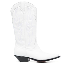 Santa Fe western-cowboy boots from Sonora featuring white, calf leather, Western style, all-over motif embroidery, low block heel, pointed toe, mid-calf length and tonal design. Santa Fe leather western boots Size and Fit - Heel 1,6 in / 4 cm