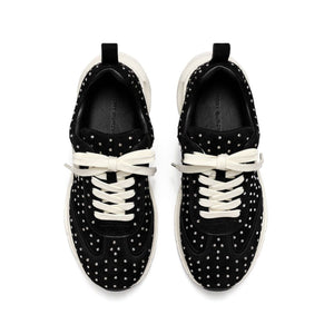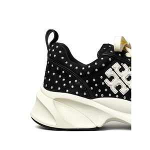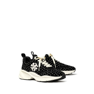 black/white leather suede panelled design front lace-up fastening pull-tab at the heel stud embellishment signature Double T motif appliqué logo round toe branded insole cushioned midsole chunky rubber lug sole Good Luck sneakers Size and Fit - Heel 1,6 in / 4 cm; Platform 0,4 in / 1 cm