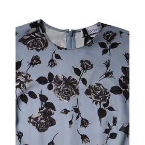 Valentino Light Blue Floral Long Sleeves A-line Mini Dress