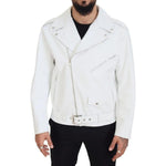 Dolce & Gabbana White Leather Biker Coat Zipper Jacket