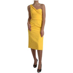 فستان دولتشي آند غابانا أصفر متوسط الطول بكتف واحد وفتحة جانبية