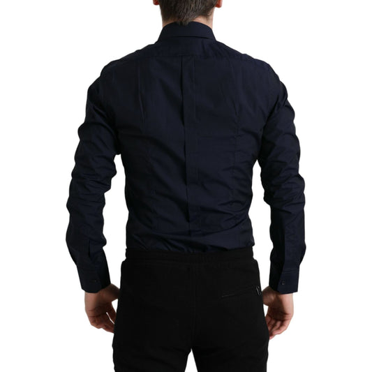 Dolce & Gabbana Navy Blue Slim Fit Formal GOLD Dress Shirt