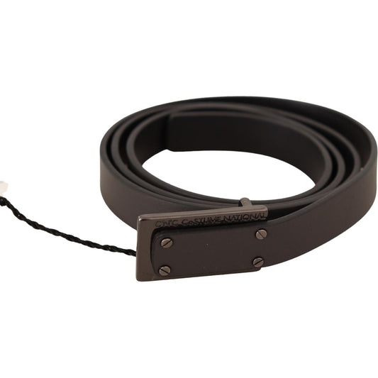Costume National Belt Black Leather Silver Buckle Waist Belt