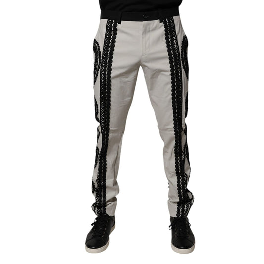 Dolce & Gabbana White Lace Trim Mid Waist Dress Formal Pants